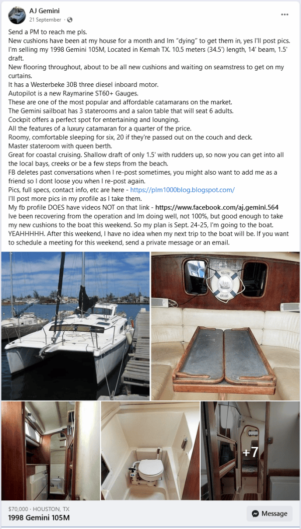 Below are 10 boats to show that it can be an affordable option for anyone. I did not go searching for these, I simply looked in two Facebook groups (Liveaboard Sailboats for Sale, and Catamarans For Sale by Owner - Worldwide) and these were the first boats I saw.